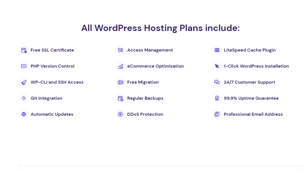 Hostinger’s hosting plans include a range of features such as SSD storage, free SSL certificates, and an easy-to-use control panel. They also offer a 99.9% uptime guarantee and a 30-day money-back guarantee, making it easy to try out their hosting services risk-free.